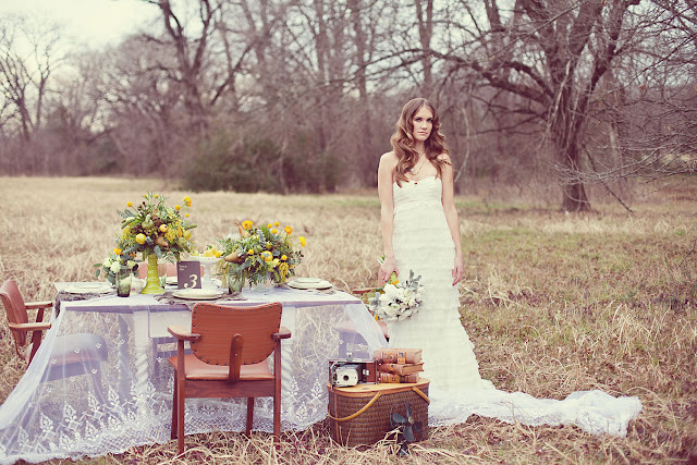 Alicia, from Bows & Arrows Deluxe: “Like something from my favorite storybook as a young girl, our photoshoot captures the innocence of a young bride, gathering a few of her favorite belongings and using them to create an effortless, intimate wedding affair in her own pasture. Every detail is based on timeless vintage pieces from an era long gone, but never forgotten.”